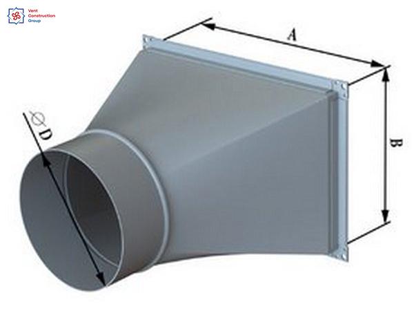 Переход с круглого на прямоугольное сечение воздуховода — фасонный элемент вентиляции